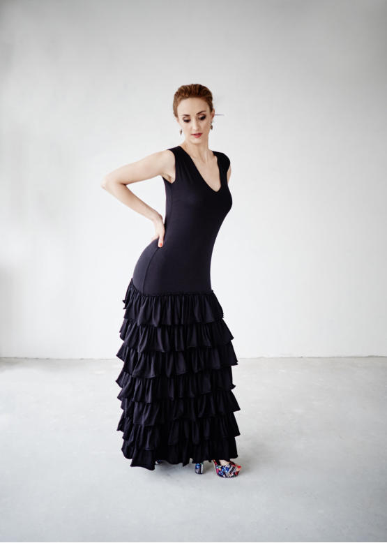 rochie neagra lunga cu volane