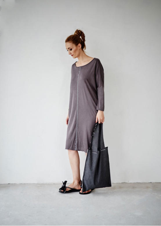 Rochie din jerse de bumbac cu croiala ampla, decolteu