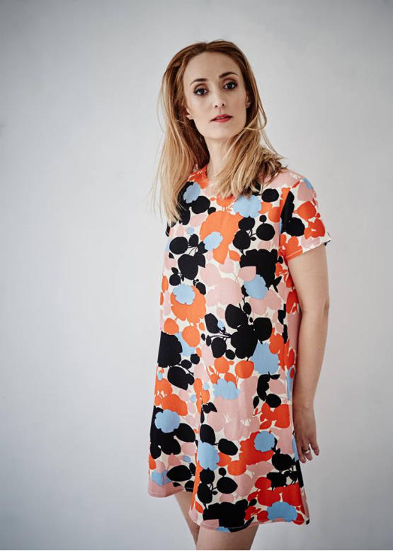 Rochie cu croiala A-line, decolteu rotund si buzunare